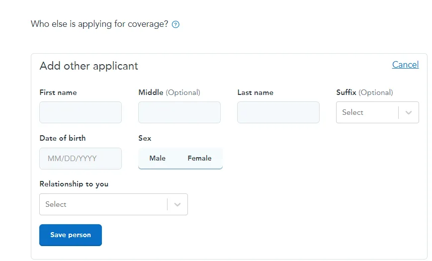Please list the Full Name, DOB, Sex, Social Security Number and Relationship for any other family members applying for coverage (Spouse, child, etc). If not applicable, you can put NA below.